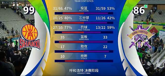 最终,山西男篮以99-86逆转击败北控队,顺利淘汰对手,打进4强。