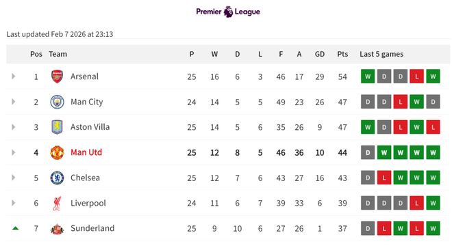 幸好,这无碍曼联最终取胜,先赛情况下缩小了与前三名的分差。热刺在英超联赛中则已连续7场不胜,仅取得4分,排名跌至第14位,距离降级区仅有4分差距。