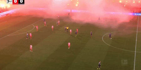 第10分钟,球迷燃放烟花造成场上烟雾过大,裁判暂时吹停比赛