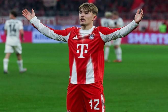 2025世俱杯,孔帕尼带了几名青训小将赴美感受氛围,17岁的卡尔便是其中之一,他在10比0奥克兰城的比赛中得到了半场一线队首秀时间。夏天拜仁送走科芒、萨内等老臣,加之穆西亚拉重伤,前场阵容骨感,这也给卡尔走上前台提供了条件。起初,卡尔在主要替补登场的情况下敢于突破和射门,毫不怯场,但在处理球方式上并不合理。10月底主场对布鲁日,卡尔首次在欧冠拿到先发机会,随即一脚穿云箭斩获一线队处子球,并依靠灵动的表现拿下全场最佳。